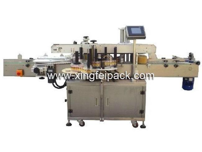 XF-TBII automatic double side bottle labeling machine achieves fast and accurate automatic labeling adhesive paper label or adhesive film label on profile plane, radian plane of profile, circular surface, and square surface of the products.
